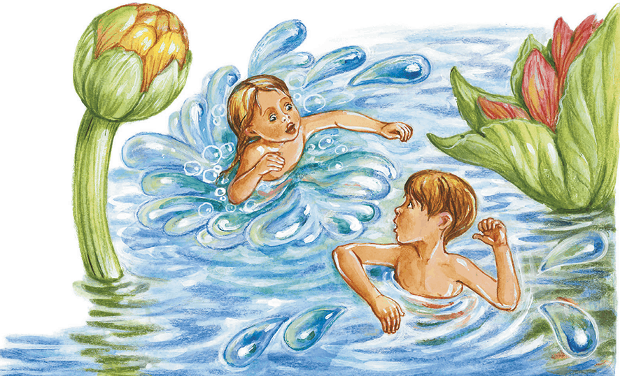 Фыркая и выплевывая воду, Карик поплыл к сестре.