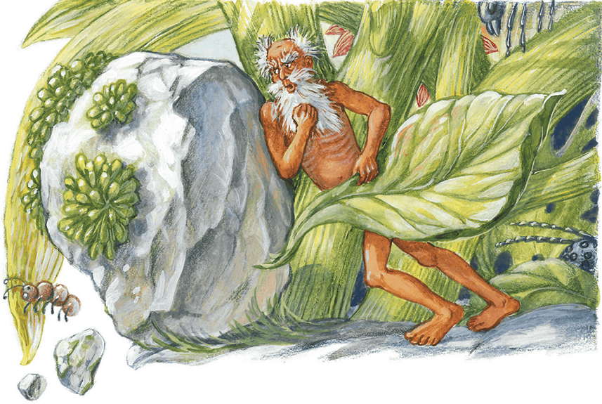 Ловко орудуя острым копьем, Иван Гермогенович разрезал паутинные сети, в которых запуталась оса, тщательно очистил их от липких узлов и обмотал вокруг себя. Мягкие, шелковистые веревки плотно обвили его тело.
