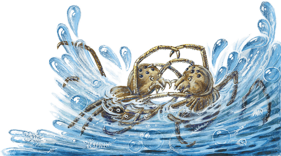 Пауки бились молча. Они оплетали друг друга мощными лапами, раскачивались, как борцы в цирке, потом вдруг отскакивали один от другого, настороженно поглядывая свирепыми глазами друг на друга, и снова, словно по команде, кидались в бой, и тогда опять клокотала и пенилась внизу вода, а стены подводного дома тряслись от могучих толчков так, будто началось землетрясение.