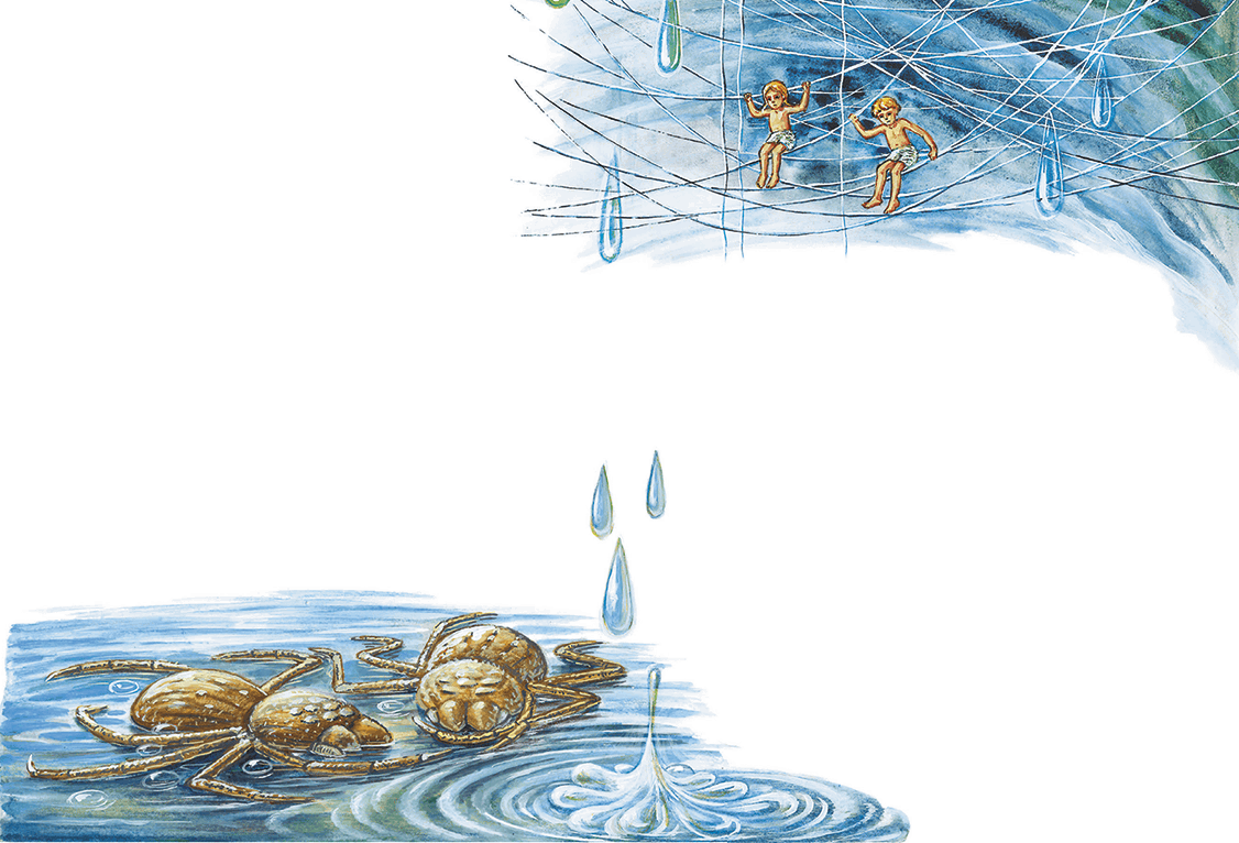 Валя закрыла глаза, разжала руки и, взвизгнув, грохнулась вниз. Карика ударил дождь брызг. Волны качнули пауков.