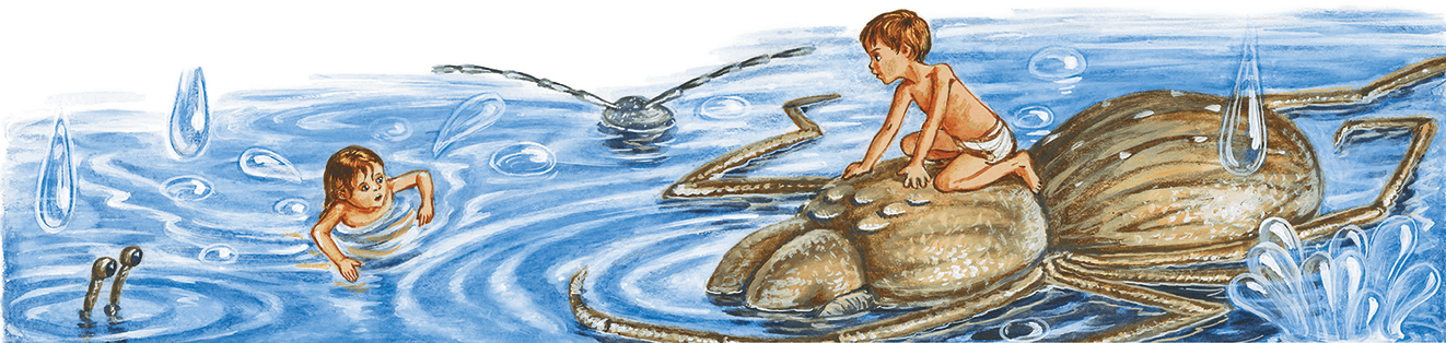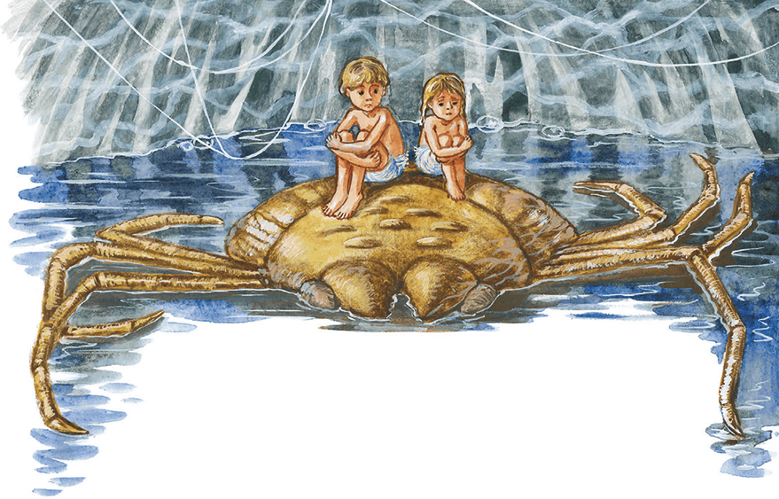 Но Карик, не обращая внимания на крики сестры, подплыл к одному пауку и, подняв руку над водой, сильно хлопнул его по брюху. Брюхо загудело, как барабан.
