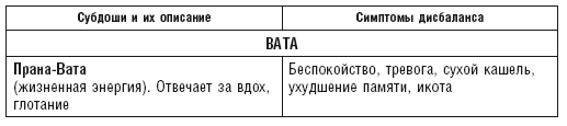 Вата-дошу образуют первоэлементы Воздух и Эфир, Питта-дошу – Огонь и Вода, Капха-дошу – Вода и Земля. Эфир и Воздух – холодные, сухие, подвижные, шершавые, лёгкие по своей структуре, поэтому и Вата-доша имеет эти качества.
