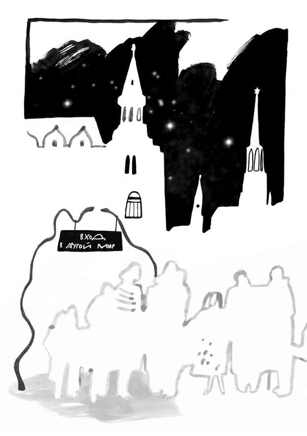 Так Кира, Соль и Марта сумели беспрепятственно пробраться за «Вход в другой мир», пока наивный охранник, гордясь сделанным добрым делом, тайком размышлял о том, не позвать ли Кирину бабушку на чашечку кофе.