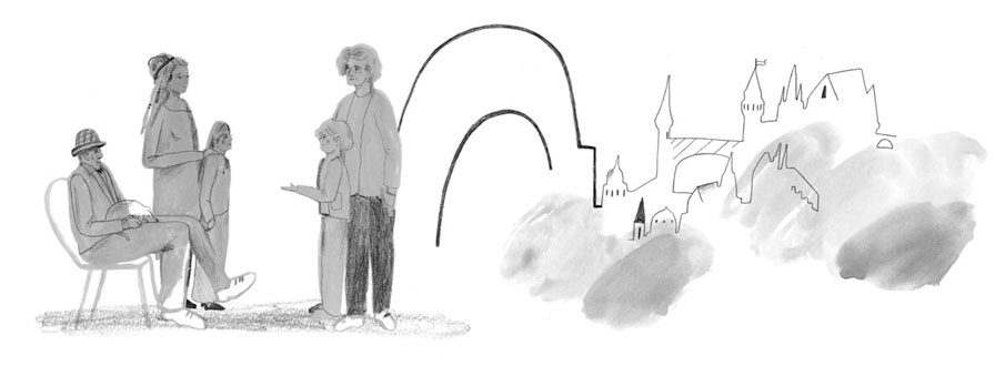 Но, прежде чем уйти, она еще немного посидела на подоконнике, глядя в окно, улыбаясь и представляя себе, как где-то Раф начинает свой еженощный полет над городом. Камал с Иллути за пазухой и Марта пьют кофе, и пар плавает над их чашками. Надя пронзает сверкающие волны, летящие ей в лицо, верхом на драконе. Колки уверенно ведет поезд сквозь Междумирное море, сжимая в ласте штурвал. Балана, Марк и креониты делают новый, лесной и зеленый мир и пироги с яблоками. Соль и его отец отправляются в путь…