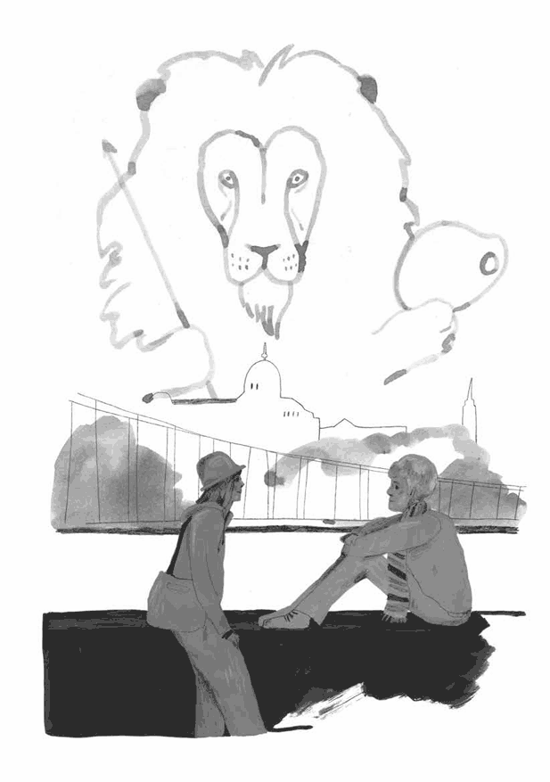 – Очень впечатляюще, – ответила Марта, заговорщически понизив голос. – У него человеческие глаза, но он похож на льва с синей гривой, густой и лохматой. Он весь увешан бусами и разукрашен белыми узорами. В одной лапе он держит копье, а в другой – палитру. Все потому, что одной лапой он разрушает, а другой – создает… Как любой путешественник. А еще у него очень длинный хвост и большой темный нос с горбинкой. Во всяком случае, именно таким его изображал Питер на своих картинах.