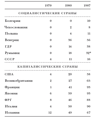 Позволю себе обратить внимание читателя на две детали. Во-первых, в социалистических странах отставание последователей от первопроходцев было значительно заметнее, нежели в странах капитализма (ср., например, данные в табл. 1–2 и 1–3). При рассмотрении более длительных периодов наблюдается рост, а не сокращение периода отставания. Во-вторых, распространение новых продуктов и технологий в капиталистических экономиках происходило гораздо быстрее, чем в социалистических (см., к примеру, табл. 1–4 и рис. 1–1).
