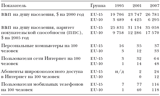 Распространение современных коммуникационных технологий в странах ЕС: пятнадцать «старых» членов (EU-15) в сравнении с десятью «новыми» членами – бывшими странами социалистического блока (EU-10)