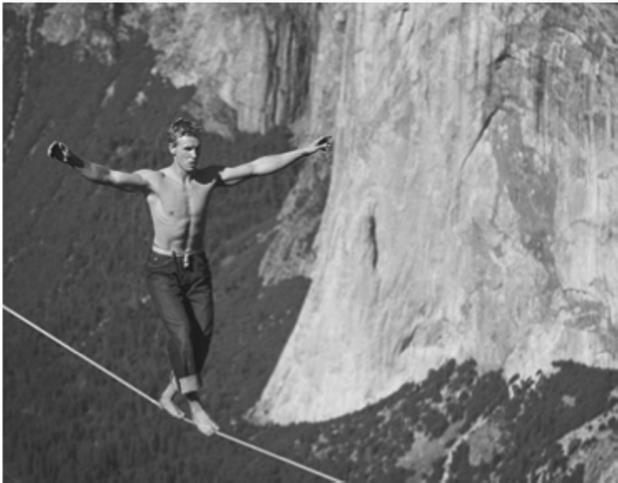 Та, что слева, верно? Хотя, если вдуматься, на обеих картинках показана одна и та же история: героям нужно пройти по тонкой линии, удерживая равновесие. Однако потенциал привлечения и удержания внимания у этих картинок разный.
