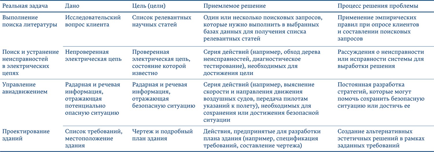 Таблица 4.3. Краткое описание задачи, цели (целей), приемлемого решения и процесса решения проблемы для четырех реальных задач