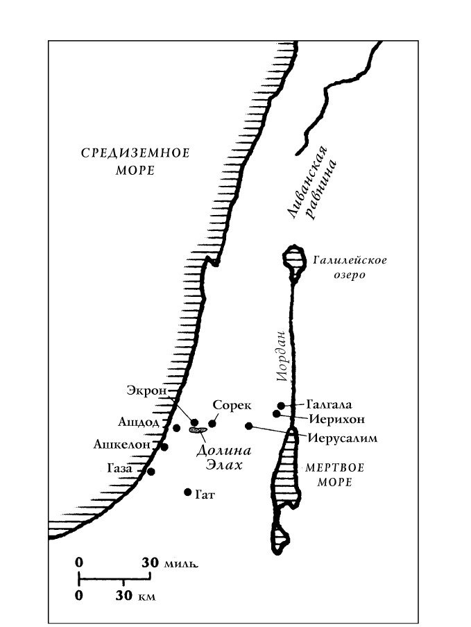 В одном из таких ничего не решающих боев, произошедшем на этот раз в долине Элах, на западном краю территории колена Иуды, сражение длилось так долго, что филистимляне предложили другой способ боя, чтобы решить его исход. Пусть бьются два избранных, по одному с каждой стороны, – и победитель возьмет страну побежденного.