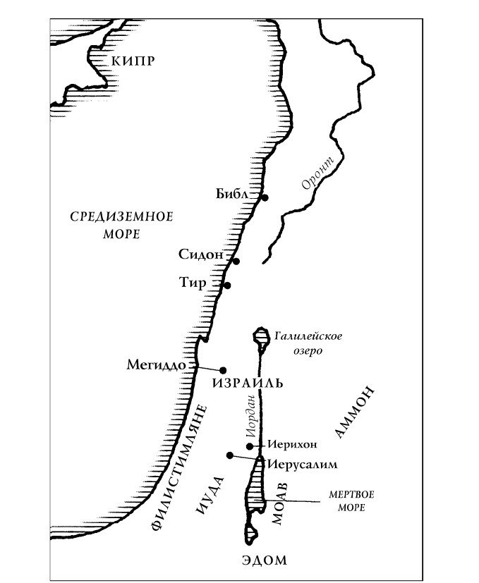 Не существовало страны, называемой Финикия, как не существовало и единого финикийского царя. Независимые города вдоль берега объединялись одной культурой и языком: их система письма была первой, которая использовала алфавит. Финикийцы фактически имели торговую монополию на один из самых ценных местных ресурсов – кедровые стволы, которые рубили на близлежащих холмах и посылали в Египет или еще дальше. Давид передал царство своему сыну Соломону – эта передача произошла с некой долей кровопролития, прежде чем Соломон утвердил свою власть, так как у Израиля еще не было в обычае наследование монархии. Торговля с Тиром позволила Соломону начать самую крупную строительную программу, когда-либо проводившуюся в землях западных семитов.