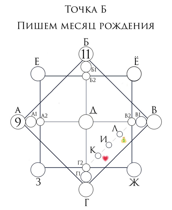 Точка Б – месяц рождения.