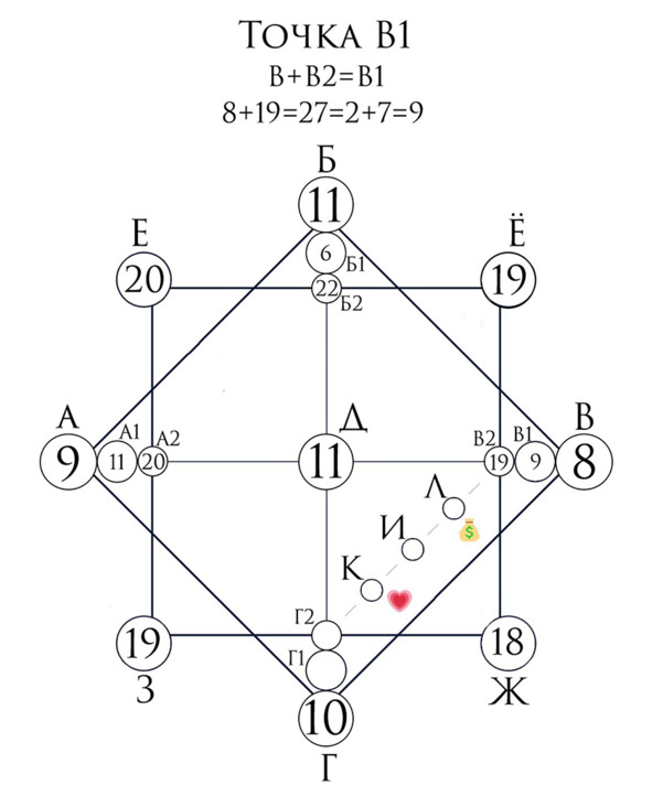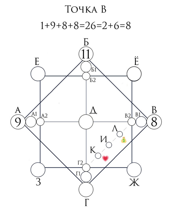 Точка В – сумма цифр года рождения.