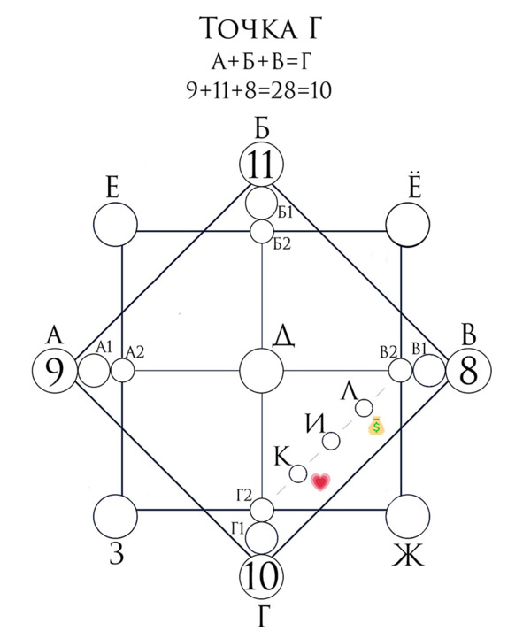 Точка Г – сумма дня, месяца и года.