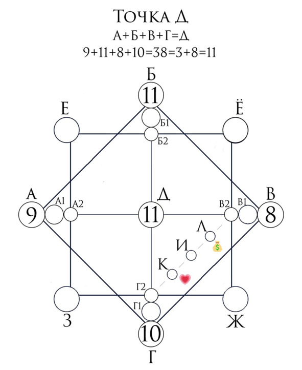 Точка Д – сумма дня, месяца, года и общей суммы.