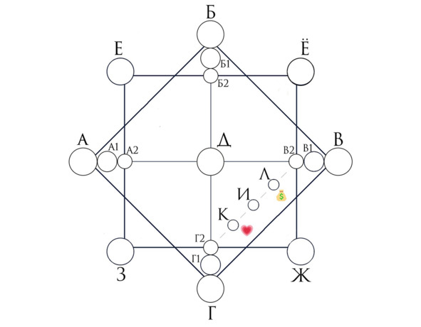 Она нам рассказывает о том, как человек относится к другим людям, чего хочет от отношений, семьи, как с человеком можно взаимодействовать и расположить к себе, а также какой у человека дуал (партнер в + или —).