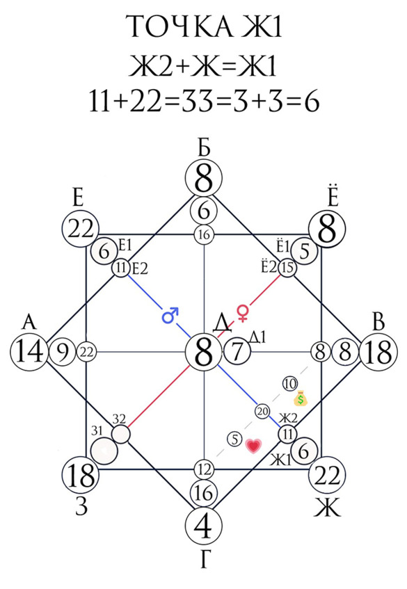 – Точка Ж – В+Г=Ж, т.е. 18+4=22