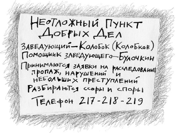Она положила на стол перед Колобком записку. Он надел очки и стал похож уже не на мелкого тигра, а на уютную бабушку. Колобок прочитал, не отрываясь от увеличительного стекла: