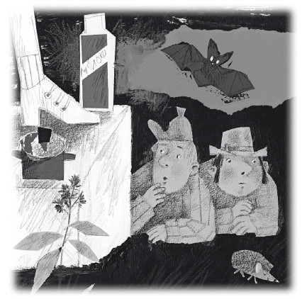 Тихо тикали сверенные часы. Кружились звёзды. Колобка никто не трогал. А Булочкину не везло. Его кусали то комары, то муравьи. На него садились летучие мыши. Изредка по нему пробегали ежи.