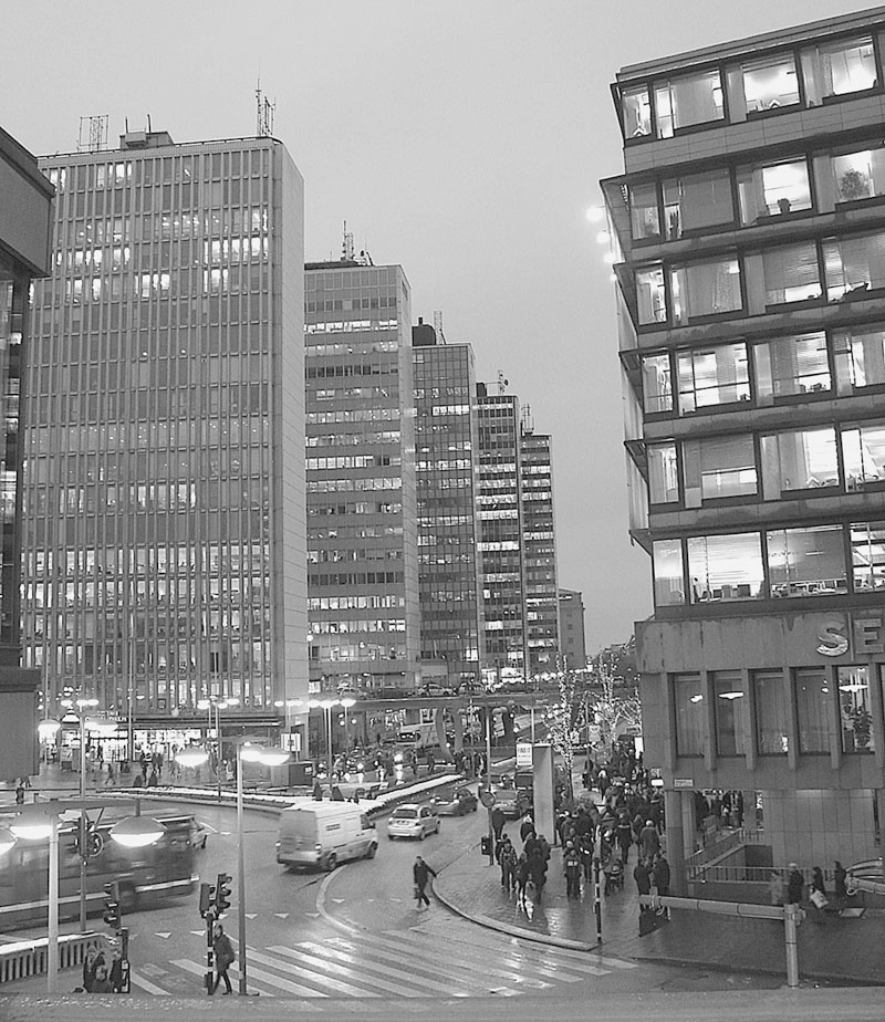 Центр всё больше оказывался во власти цемента и бетона; у площади Сергеля соорудили не вызывавшие ничего, кроме негодования, небоскрёбы. Весь Стокгольм превратился в одну сплошную стройку, о которой журналист Ян Улоф Ульссон написал так: «Ничего не знающий о происходящем американский турист, говорят, летом спросил, кто же разрушил Стокгольм на сей раз – русские или немцы? Гордо ответили ему наши сограждане: “Всё это мы сделали своими руками!”»