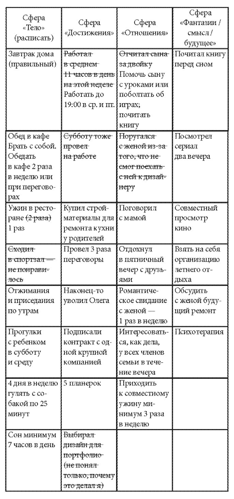 Запишите, какие дела вы сделали за прошедшую неделю, распределяя их по сферам: