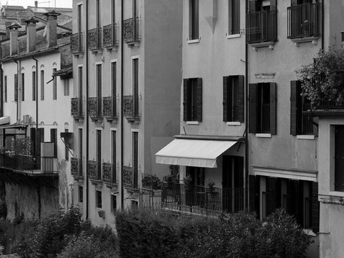 Наша квартирка маленькая, но необычная. Выходит она балконом на узкую речку, на средневековый мост, на брачующихся лягух, на окно синьоры напротив, которая по вечерам кормит уток, фазанов и цапель… Настоящий зоопарк в центре города.