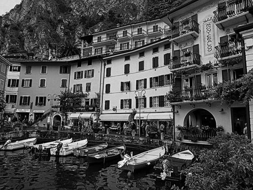 После завтрака в аромате цветов под плеск волн просыпается городок Лимоне-суль-Гарда на другой стороне озера, и начинается мельтешение паромов, лодок, корабликов и, конечно, сёрферов.