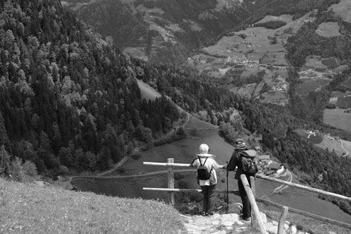 Потом мы идем вперед, к смотровой площадке, откуда видны озеро и деревни в горах противоположной стороны, незаметные снизу. Я все пыталась представить, кто там живет и как каждый день ездят на работу и домой.