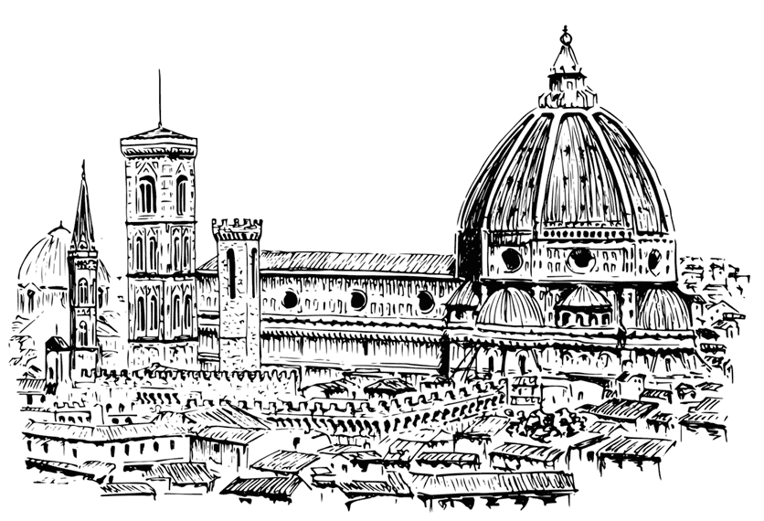 А над крышами, над рекой, над городом плывет купол флорентийского Дуомо, собора Цветущей Девы Марии, словно рамой прекрасной картины обрамленный цветами сада на холме.