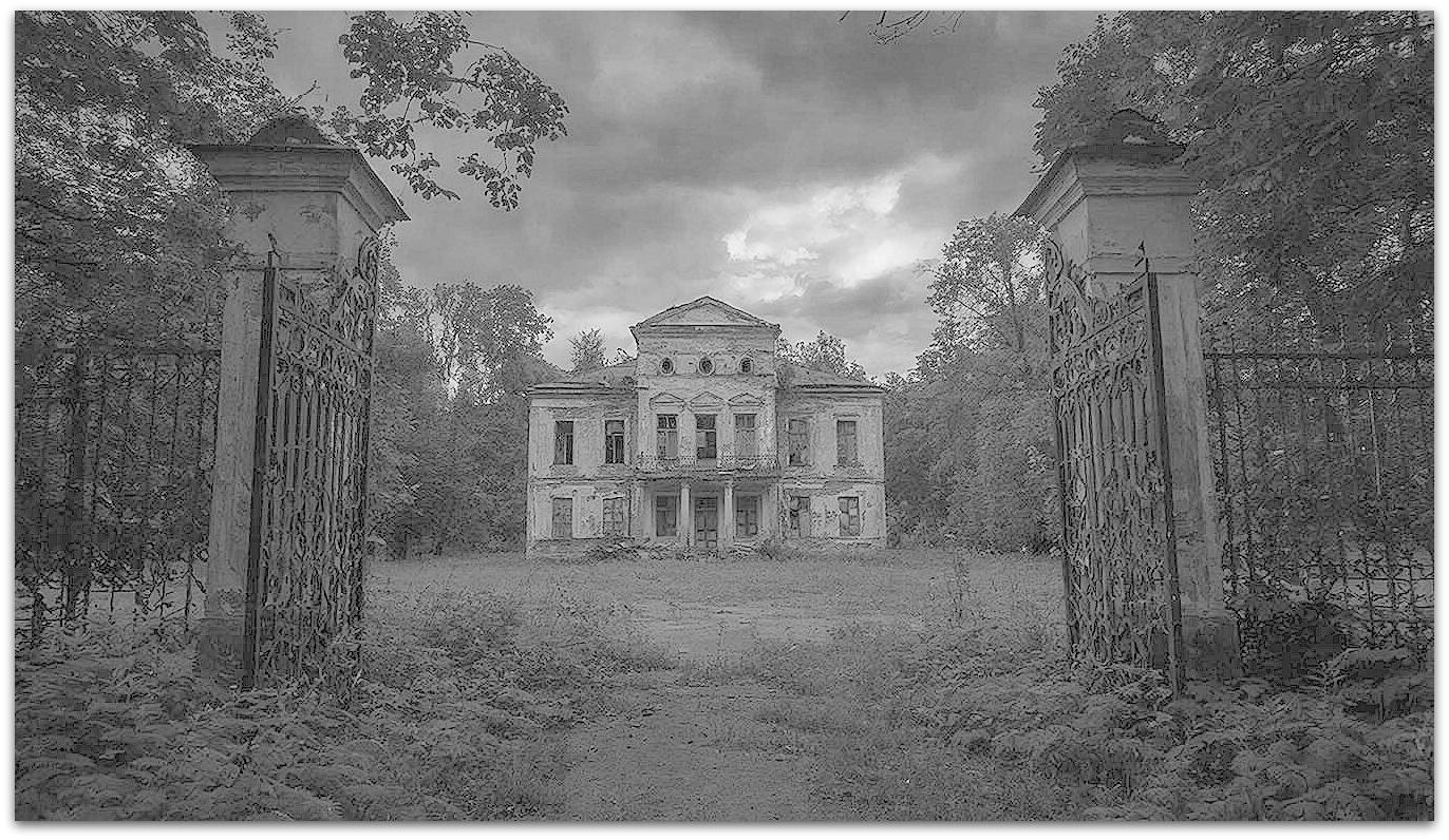 Дом Мелецких возник перед ними как декорация к дурному сну – такая же зыбкая, такая же неправильная. За два года усадьба словно постарела на десятилетия. Каменные колонны, обрамляющие въезд, облупились, обнажая грязный кирпич. Кованая решётка, когда-то бывшая предметом гордости хозяев, покрылась рыжими потеками ржавчины и местами погнулась, словно от чьего-то мощного удара изнутри – или от отчаянной попытки выбраться.