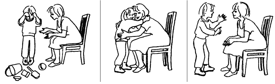 Во-первых, если вы хотите послушать ребенка, обязательно повернитесь к нему лицом. Очень важно также, чтобы его и ваши глаза находились на одном уровне. Если ребенок маленький, присядьте около него, возьмите его на руки или на колени, можно слегка притянуть ребенка к себе, подойти или придвинуть свой стул к нему поближе.