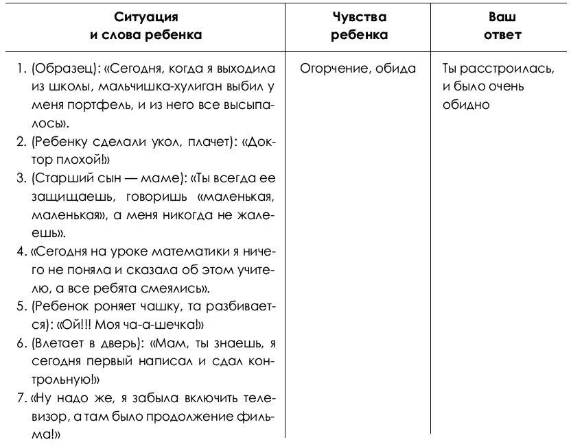 Удивительно, как одно, совсем, казалось бы, незначительное изменение в ответе взрослого (вместо: «Почему же ты злишься?» – «Я чувствую, что ты злишься») может повернуть разговор иначе.