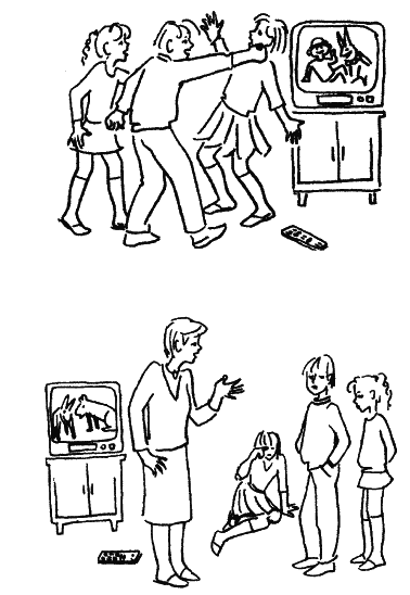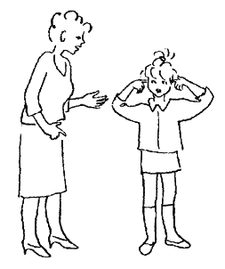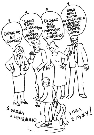 Заметим, что в этом разговоре первые же ответы мамы на слова мальчика («Не можешь сам справиться», «Тебе не нравится рубашка») настраивают ее на то, чтобы действительно послушать его, услышать его ответы, а не только свои приказания. В результате сын охотно делится своей действительной проблемой, и мать готова ее принять. Если же разговор идет первым способом, то неизбежно появляется следующий тип родительских фраз.