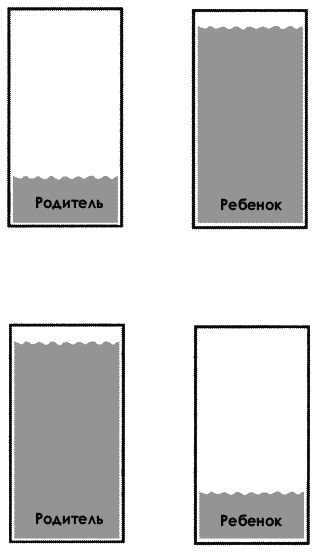 Когда больше переживает ребенок, его «стакан» полный, родитель же относительно спокоен, уровень в его «стакане» низкий.