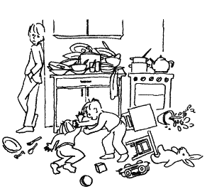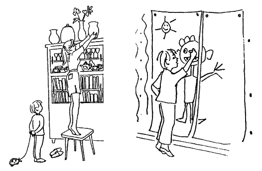 Вы, конечно, легко найдете другие примеры того, как в повседневной жизни оградить себя и своего ребенка от излишних напряжений. Некоторые родители ставят временные заграждения на окна, убирают повыше все бьющееся, выносят из комнаты дорогую мебель, чтобы ребенок мог свободно двигаться, наклеивают в его комнате дешевые обои обратной стороной, чтобы он мог на них рисовать.