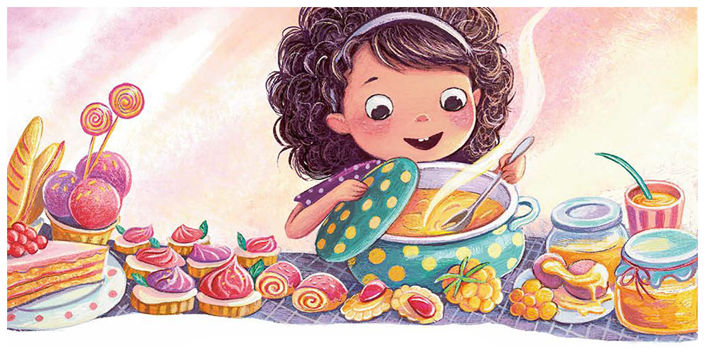 Дело в том, что Желтунья и Малик готовили разную еду. Малик пёк пряники и тарталетки, взбивал воздушные кремы и муссы, разливал по чашечкам желе и шербеты. Желтунья же резала салаты, варила крем-супы, тушила рагу и даже умудрялась жарить котлетки. Поэтому Ежевичка оценивала каждого по-своему.