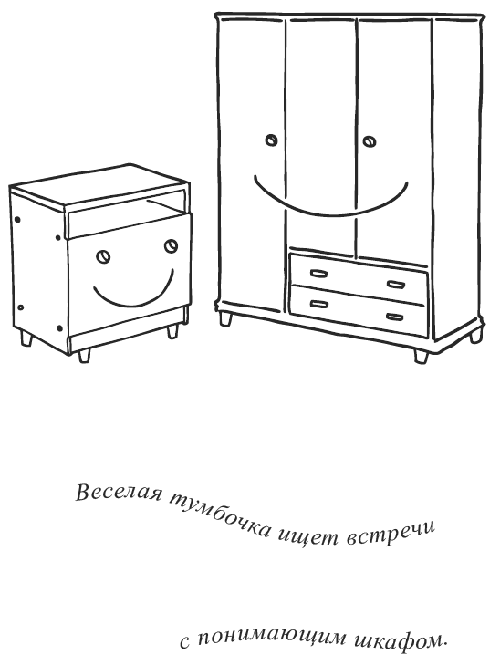 – Веселая тумбочка ищет встречи с понимающим шкафом! – я пытаюсь развеселить Катю, но пока не получается.