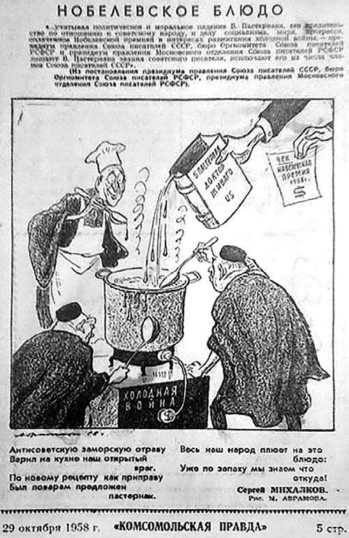 Марк Абрамов «Нобелевское блюдо», карикатура в газете «Комсомольская правда», 1958