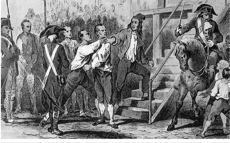 Тони Жоанно «Камиль Демулен и Жорж-Жак Дантон перед казнью», пер. пол. XIX в., раскрашенная гравюра