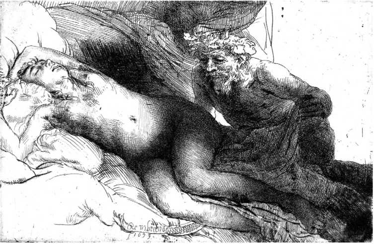 Рембрандт Харменс ван Рейн «Юпитер и Антиопа», 1659, офорт