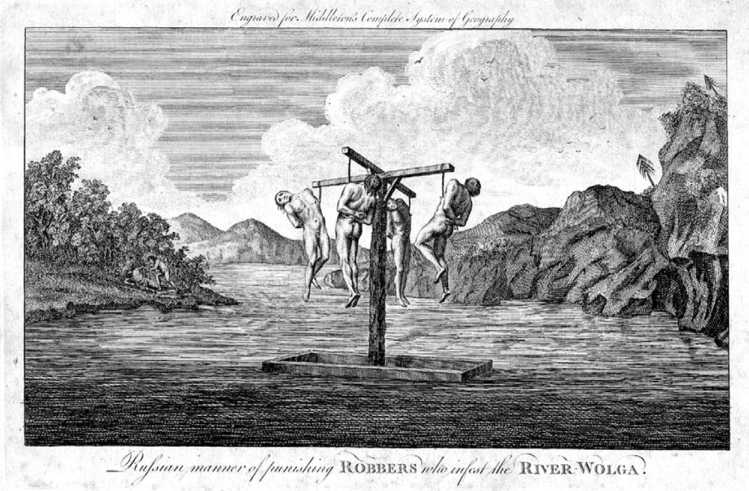 «Наказание пиратов на Волге», гравюра из книги Чарлза Миддлтона «A New and Complete System of Geography», 1777