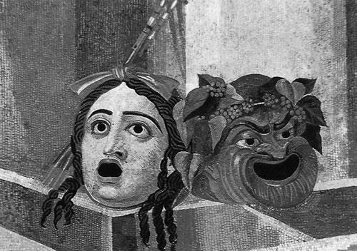 Античные театральные маски трагедии и комедии. Римская мозаика, II в. н. э.