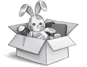 Я протискиваюсь между шкафом и холодильником и выуживаю из ближайшей коробки белого зайца в красный горох.