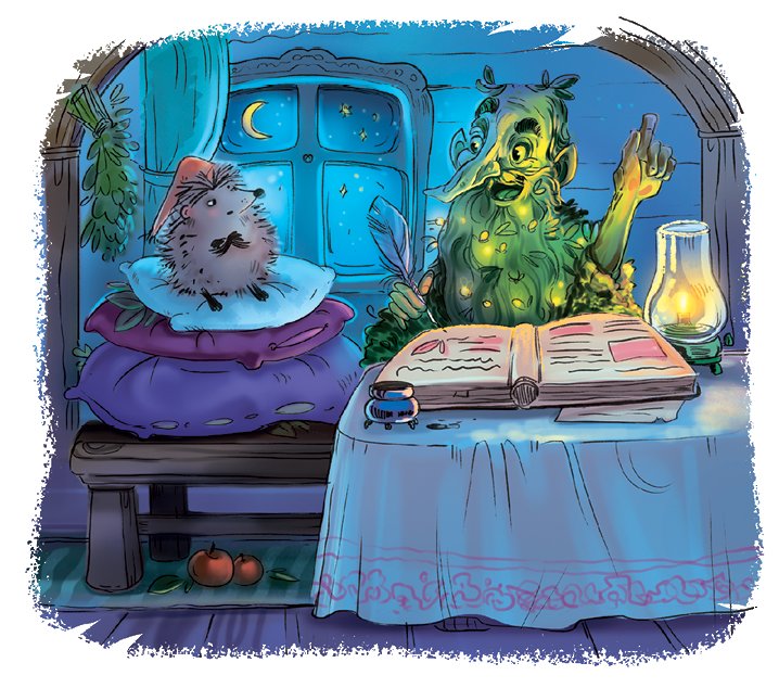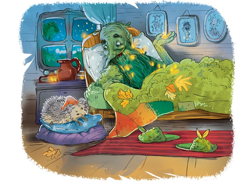 Рядом в глубоком кресле на мягкой подушке удобно развалился его верный помощник мудрый ёж. Всё, чего сейчас хотелось ежу, – это чтобы леший скорее угомонился, перестал кряхтеть, жаловаться и отправился наконец спать.
