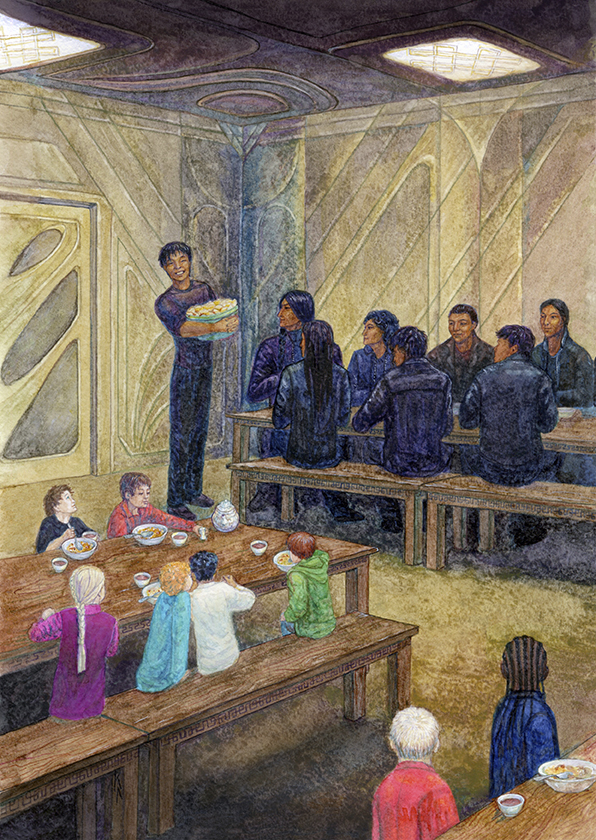 Теперь вы хотите мне сказать, что любой взрослый муданжец может на коленке свинтить звездолёт? Что-то это пурга какая-то. Небось договорились навешать нам лапши, чтобы запугать потенциального противника. Дальше не слушаю, поглощаю ещё пирожок. Одна из старших девиц уже записывает за Тирбишем рецепт, да не один. Правда, с названиями ингредиентов у них большие проблемы. Кажется, в данный момент они путают кизил и барбарис. Похоже, Азамат в знании всеобщего лидирует с большим отрывом.