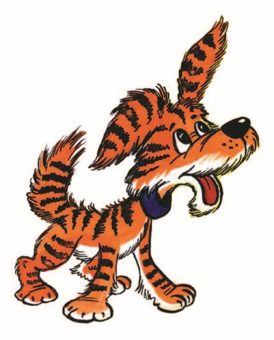 Усы у него зелёные-презелёные, глаза – как изумруды, хвост очень зелёный. Кот поглядывает на собаку. Мне, правда, может быть, и не поверят, но я скажу: это самая обыкновенная собака. Только вся оранжево-полосатая, как тигр. Она лает, а не мяукает. Она собака по имени Тиграша.