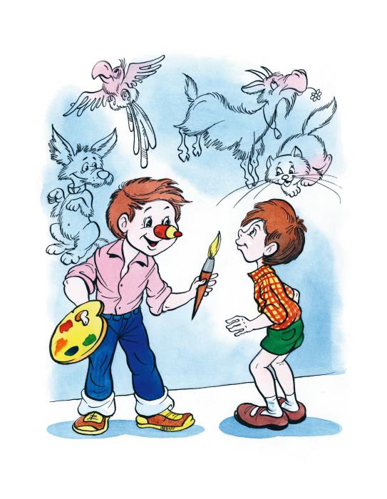 – Живая картинка у тебя пока не выйдет, – улыбнулся художник, – но я дам тебе что-нибудь раскрасить и посмотрю, как ты это умеешь. А теперь я должен придумать, кого же нарисовать.