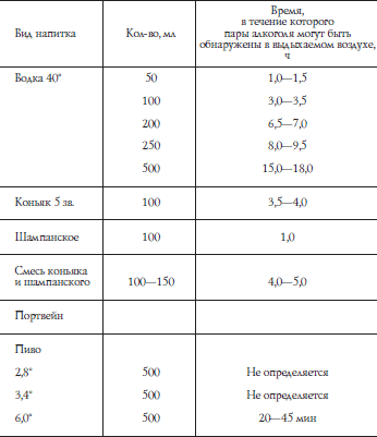 Сроки определения наличия паров алкоголя в выдыхаемом воздухе*