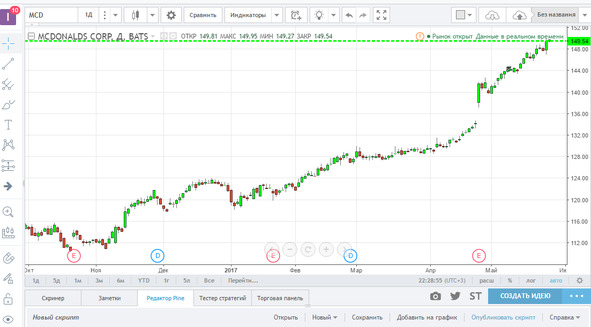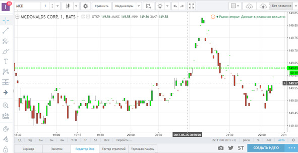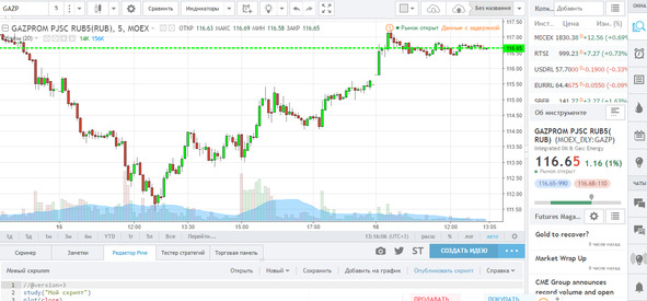 Если вы еще не подключили терминал, то есть удобный сайт, где можно работать с графиками практически любой ценной бумаги и валюты на любой фондовой бирже мира: [битая ссылка] https://ru.tradingview.com/.