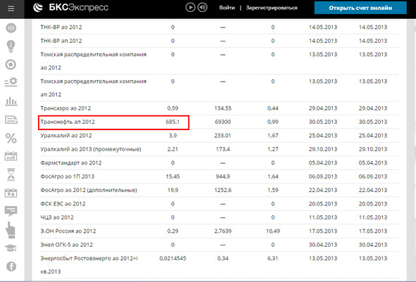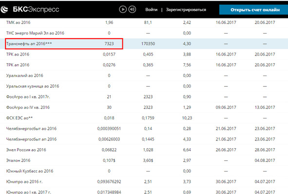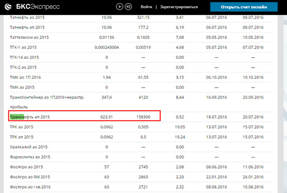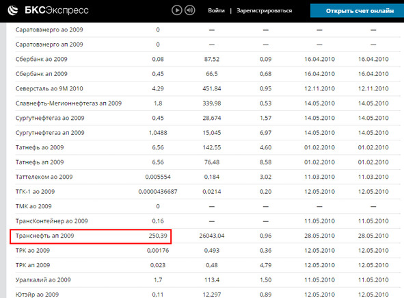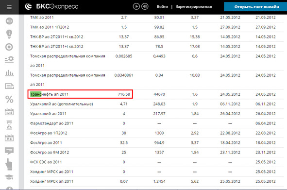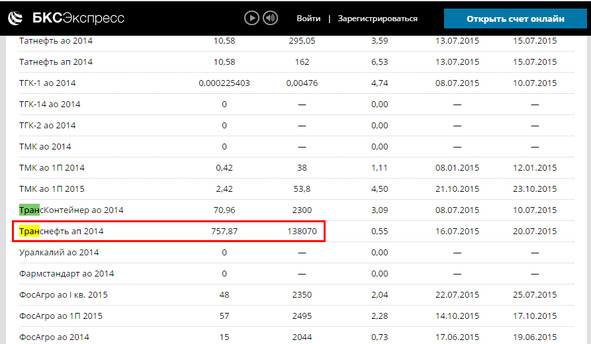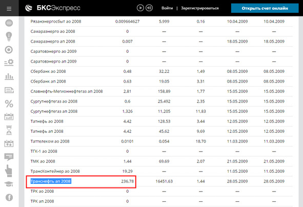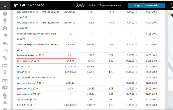 Для примера рассмотрим акции компании «Транснефть» (см. скриншот ниже).